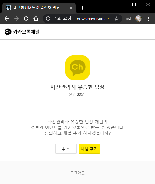 결국 박근혜전대통령의 사망소식은 자신의 카카오톡 채널로 유입시키려는 자산관리광고로 확인은 되었는데 이게 만약 광고가 아니라 실제 악성페이지였다면 생각보다 많은 사람들이 속을 수도 있겠다 생각이 들었습니다.