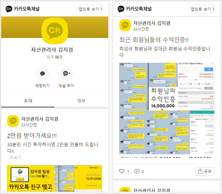 그래서 저 링크를 따라가보니, "자산관리사 유승한 팀장" 의 카카오톡 채널 페이지로 연결되었습니다.