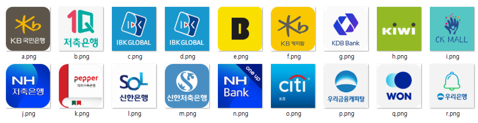 파일 내부를 더 살펴보니, 역시나 금융권 로고들이 보이고 사용자를 속이기 위한 허위 홈페이지들도 보이네요.
