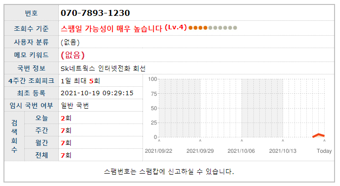 실제 070-7893-1230 자체도 현재 스팸으로 등록되어 있습니다.