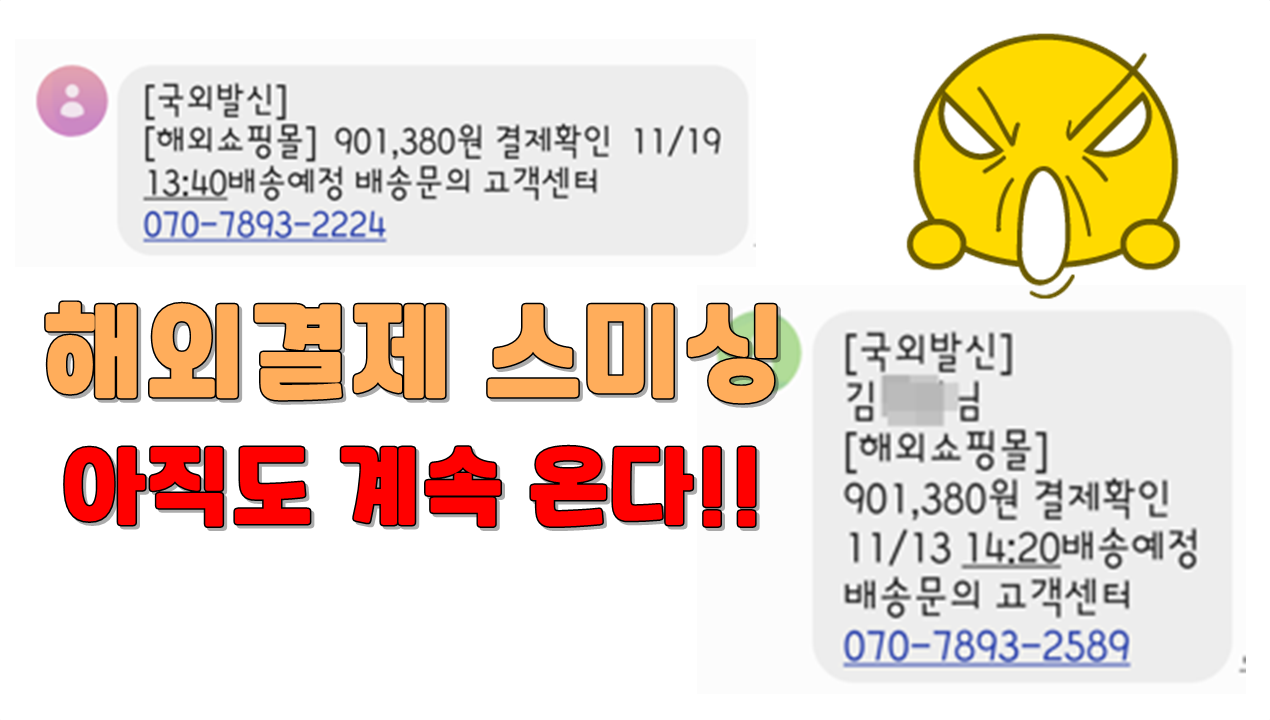 저번부터 저에게도 해외결제 관련 스미싱 문자메시지들이 주기적으로 계속 오고 있네요.